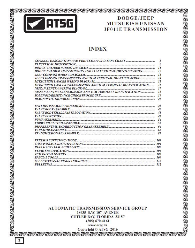 This is the ATSG (Automatic Transmission Service Group) technical manual for rebuilding the JF011E CVT transmission—used in various Chrysler, Dodge, Jeep, and Nissan vehicles. This manual is a must-have for transmission rebuilders, technicians, and advanced DIYers.